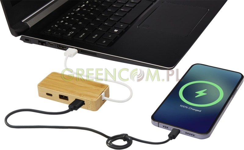 Bambusowy hub z 2 portami USB i 1 portem USB-C